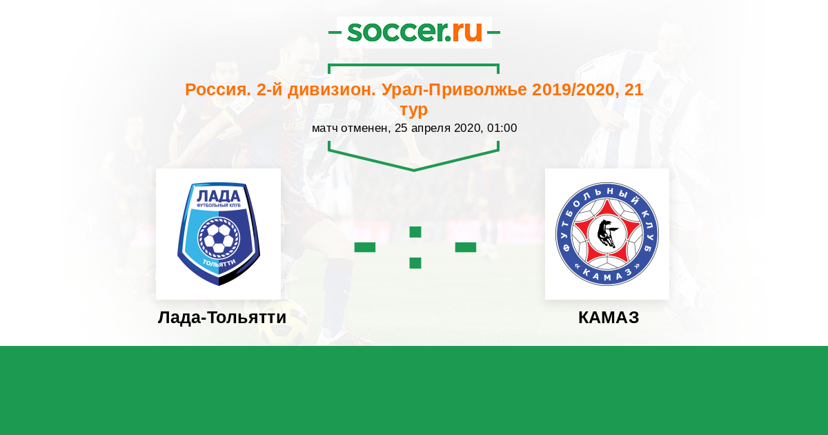 Россия. Вторая лига. Группа 4 23.08.2020 Лада-Тольятти Логотип футбольный клуб Лада-Тольятти 1:4 Логотип футбольный клуб КАМАЗ (Набережные Челны) КАМАЗ