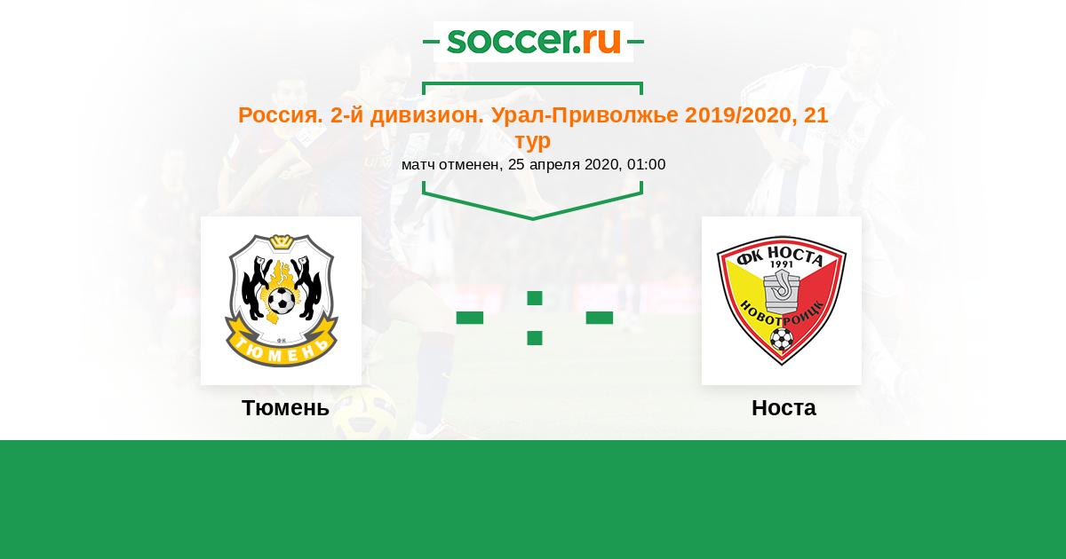 Россия. Вторая лига. Группа 4 31.10.2020 Тюмень Логотип футбольный клуб Тюмень 1:1 Логотип футбольный клуб Носта (Новотроицк) Носта
