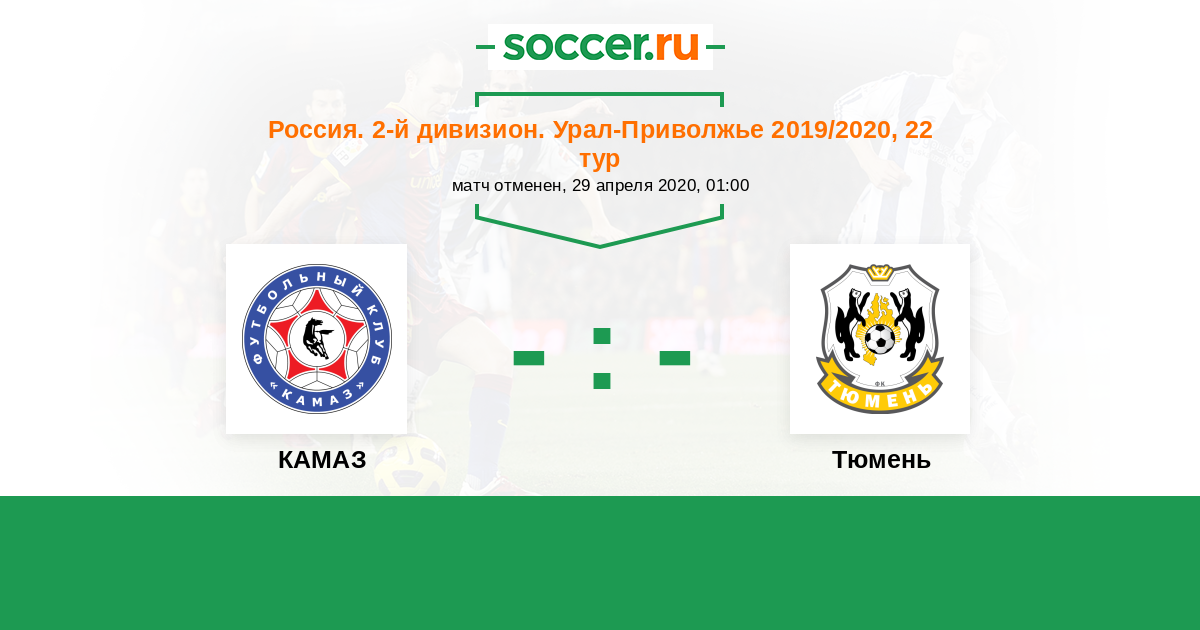 Россия. Вторая лига. Группа 4 16.04.2021 КАМАЗ Логотип футбольный клуб КАМАЗ (Набережные Челны) 3:0 Логотип футбольный клуб Тюмень Тюмень