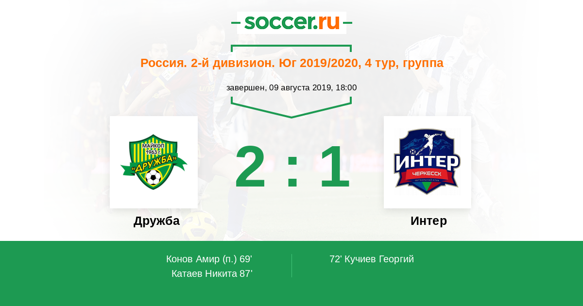 Протокол матча Дружба против Интер