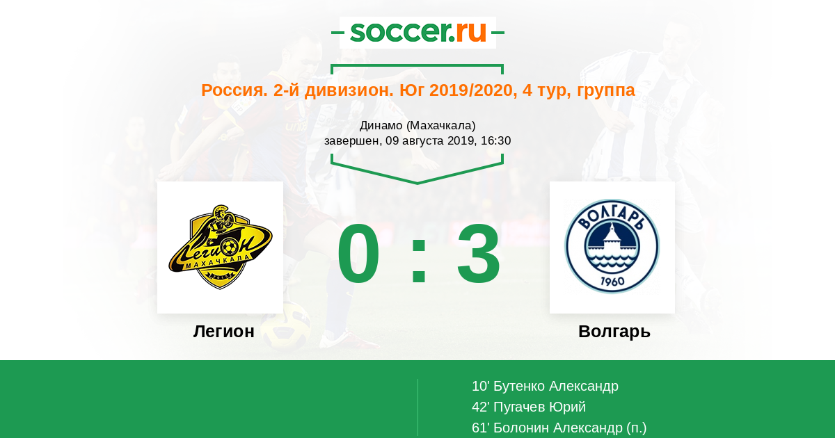 Протокол матча Легион против Волгарь