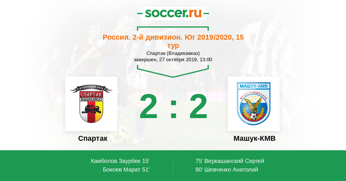 Протокол матча Спартак против Машук-КМВ