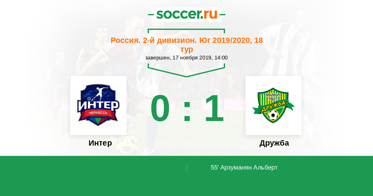 Протокол матча Интер против Дружба