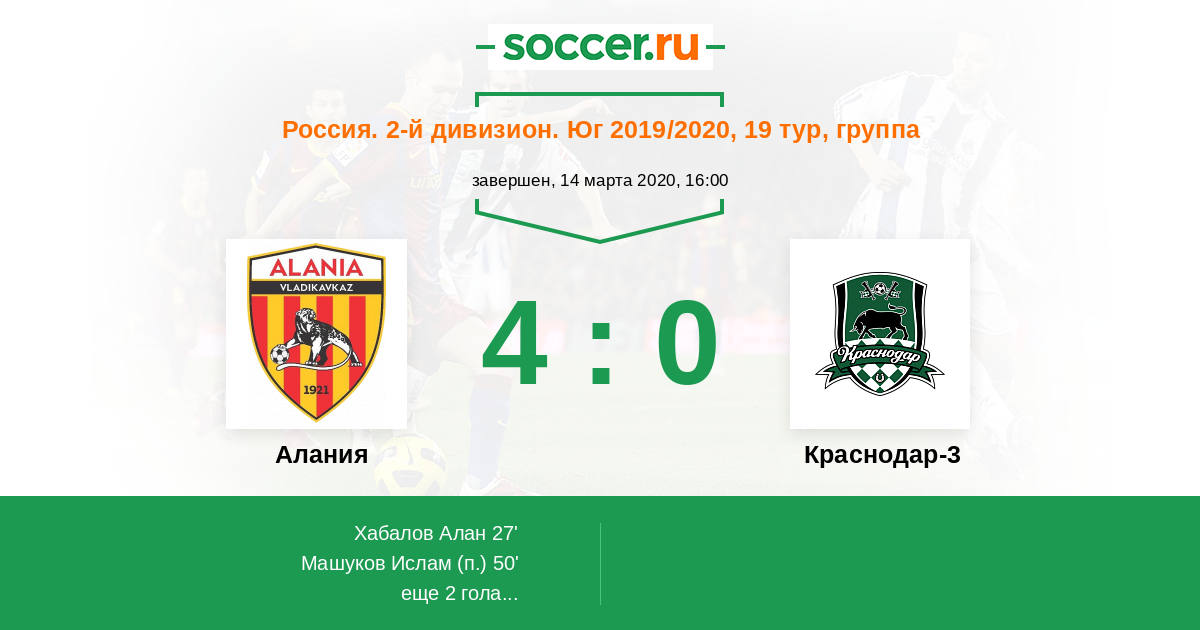 Протокол матча Алания против Краснодар-3