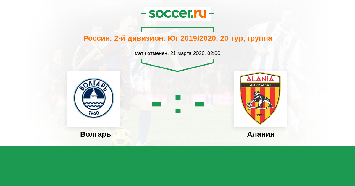 Россия. Вторая лига. Группа 1 25.08.2019 Алания Логотип футбольный клуб Алания (Владикавказ) 3:0 Логотип футбольный клуб Волгарь (Астрахань) Волгарь