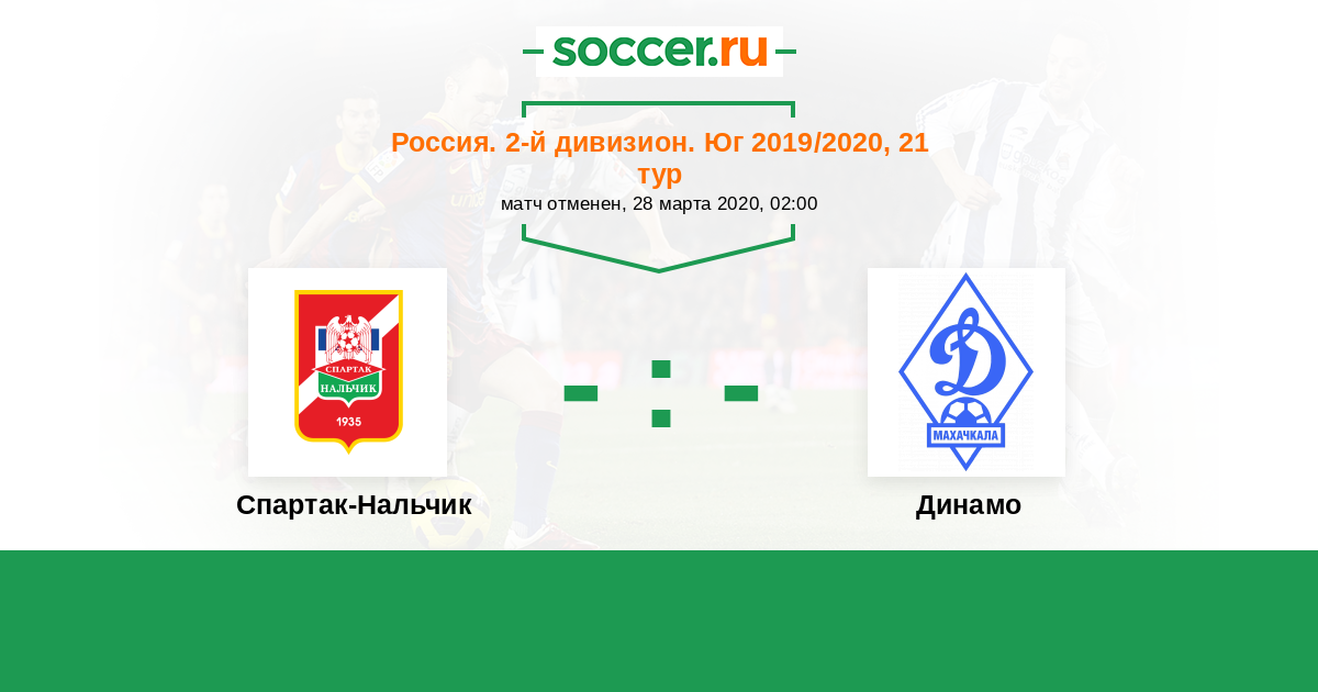 Россия. Вторая лига. Группа 1 01.09.2019 Динамо Логотип футбольный клуб Динамо (Махачкала) 1:1 Логотип футбольный клуб Спартак-Нальчик Спартак-Нальчик