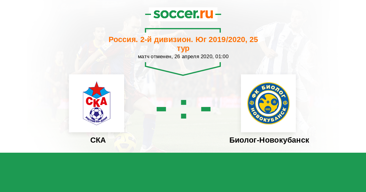 Россия. Вторая лига. Группа 1 17.04.2017 СКА Логотип футбольный клуб СКА (Ростов-на-Дону) 1:0 Логотип футбольный клуб Биолог-Новокубанск Биолог-Новокубанск