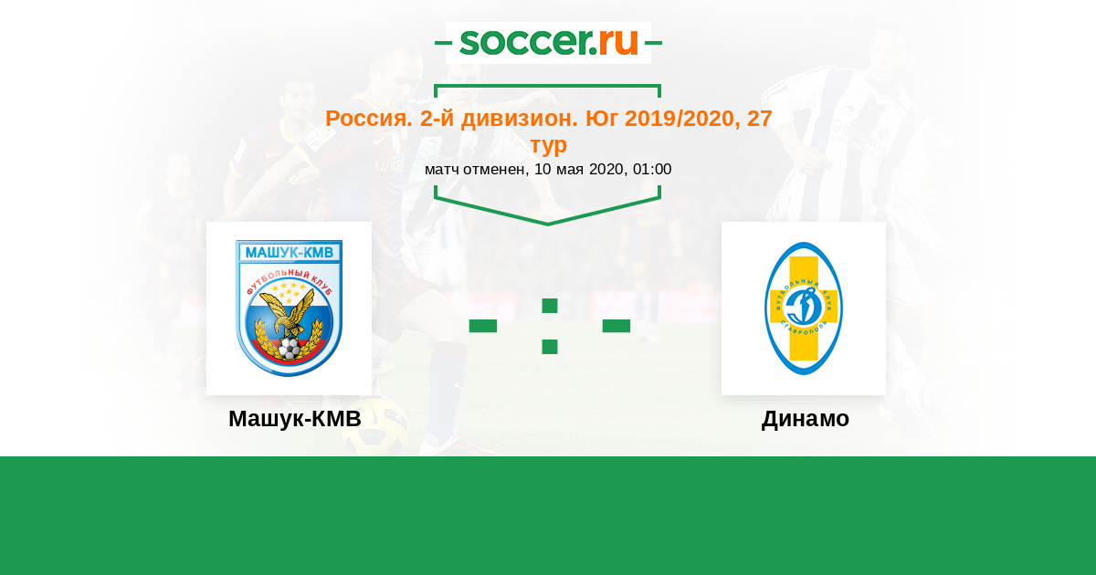 Россия. Вторая лига. Группа 1 14.05.2017 Машук-КМВ Логотип футбольный клуб Машук-КМВ (Пятигорск) 0:2 Логотип футбольный клуб Динамо Ставрополь Динамо Ставрополь