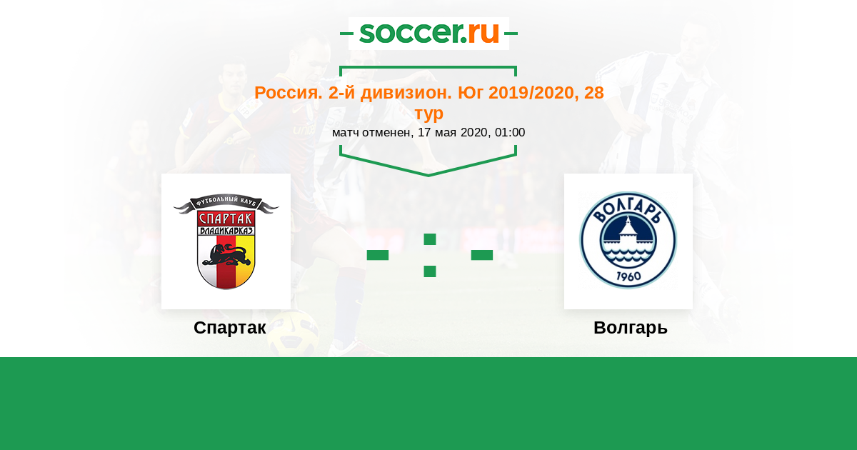 Россия. Вторая лига. Группа 1 20.10.2019 Волгарь   3:1   Спартак