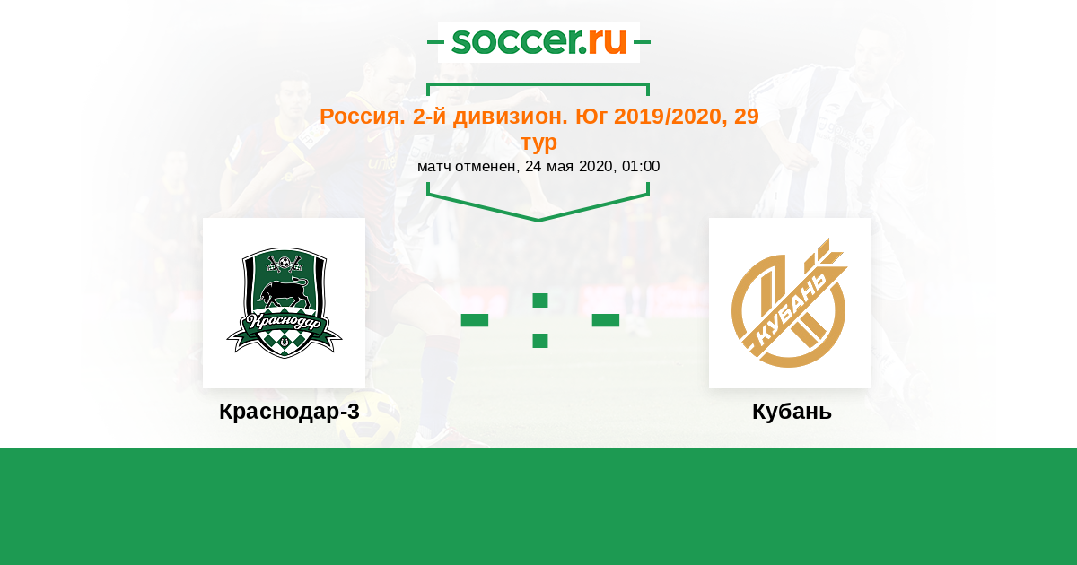 Россия. Вторая лига. Группа 1 19.09.2020 Краснодар-3 Логотип футбольный клуб Краснодар-3 0:1 Логотип футбольный клуб Кубань (Краснодар) Кубань