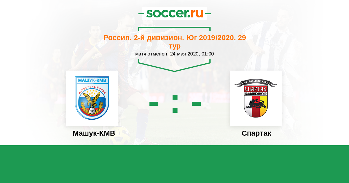 Россия. Вторая лига. Группа 1 28.05.2017 Спартак Логотип футбольный клуб Спартак (Владикавказ) 2:1 Логотип футбольный клуб Машук-КМВ (Пятигорск) Машук-КМВ