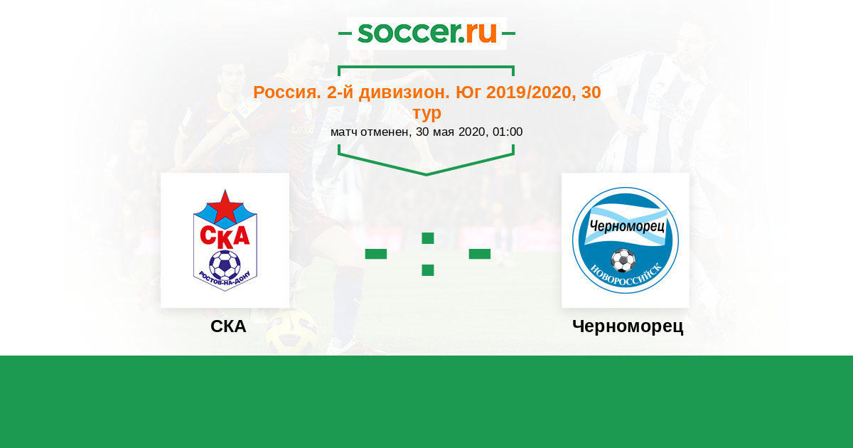 Россия. Вторая лига. Группа 1 30.09.2018 СКА Логотип футбольный клуб СКА (Ростов-на-Дону) 2:2 Логотип футбольный клуб Черноморец (Новороссийск) Черноморец