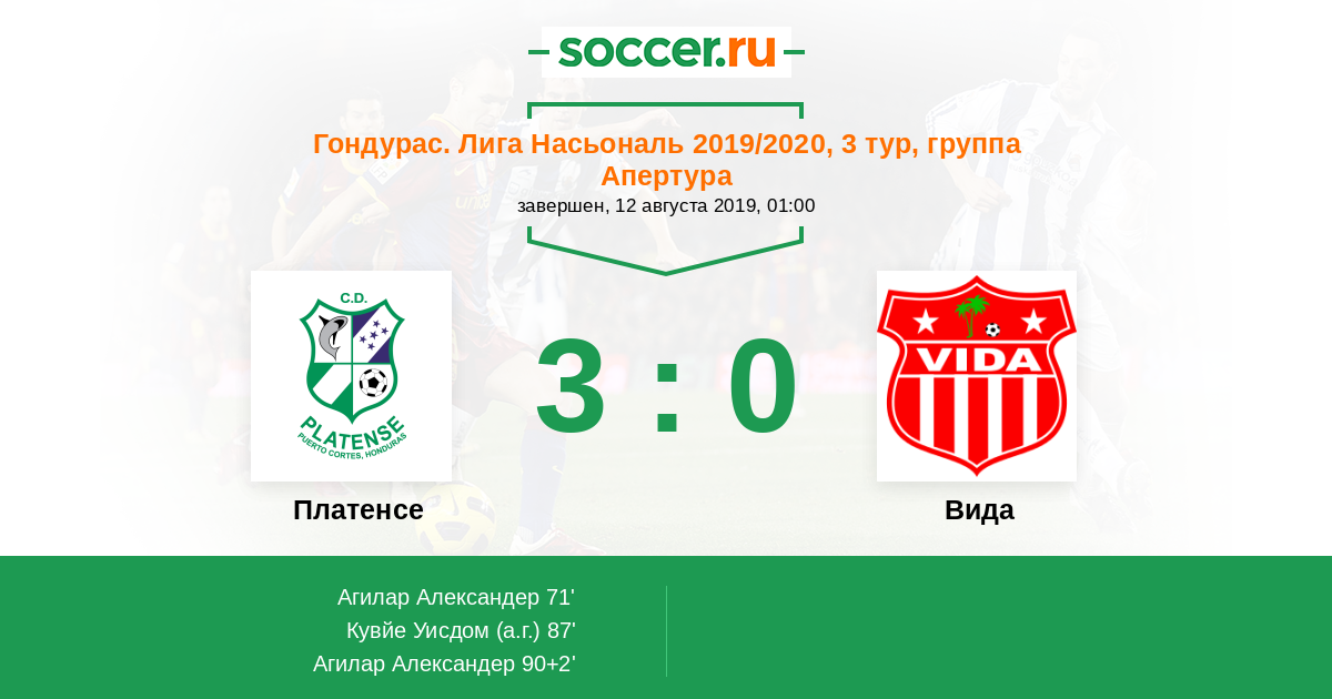 Протокол матча Платенсе против Вида