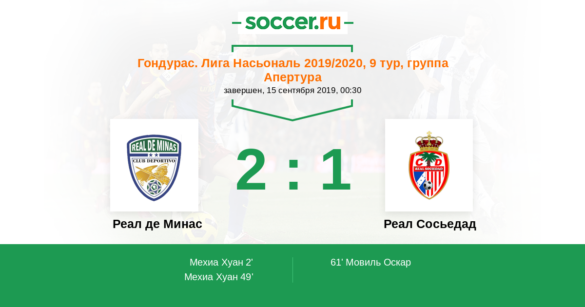 Протокол матча Реал де Минас против Реал Сосьедад