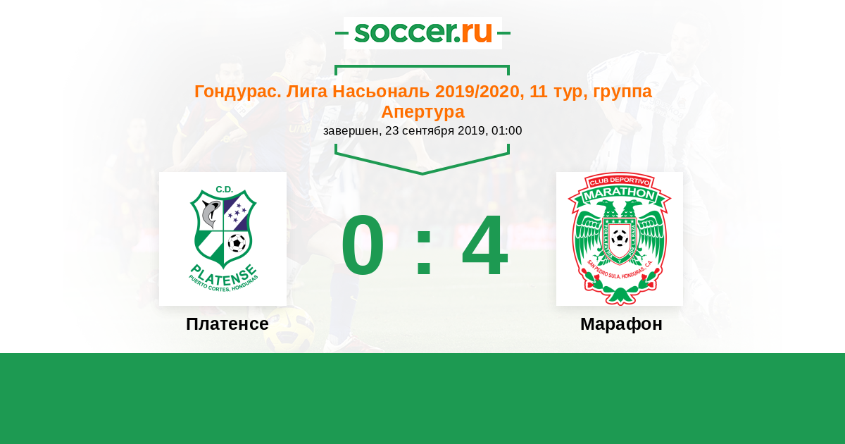 Гондурас. Лига Насьональ 13.10.2019 Марафон Логотип футбольный клуб Марафон (Сан-Педро-Сула) 3:2 Логотип футбольный клуб Платенсе (Пуэрто Кортес) Платенсе