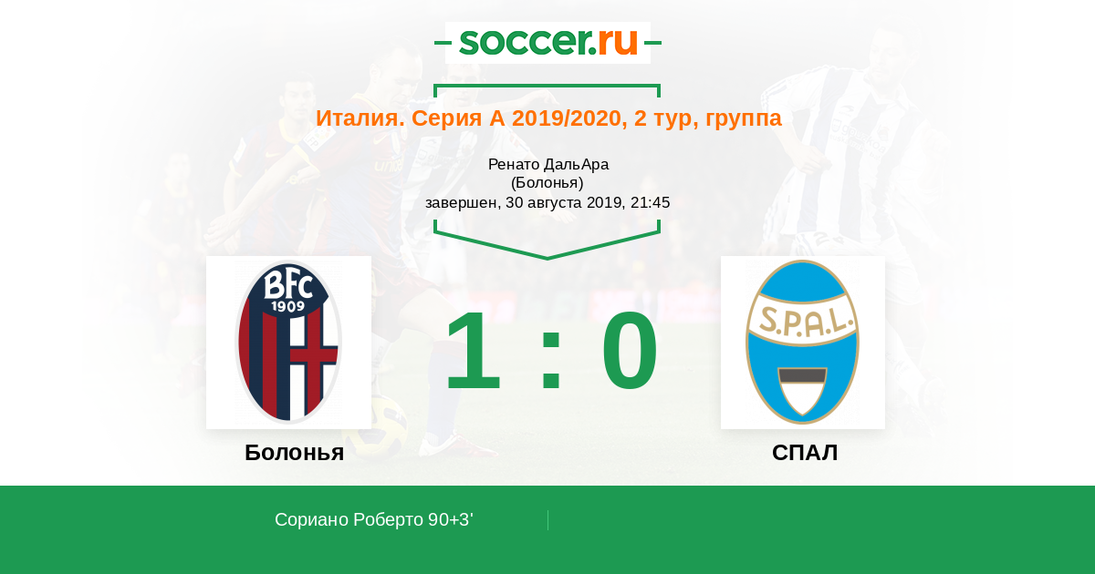 Протокол матча Болонья против СПАЛ