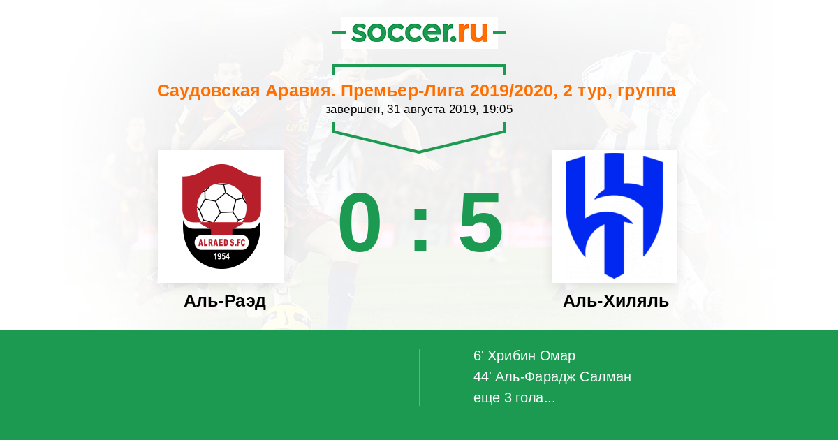 Протокол матча Аль-Раэд против Аль-Хиляль