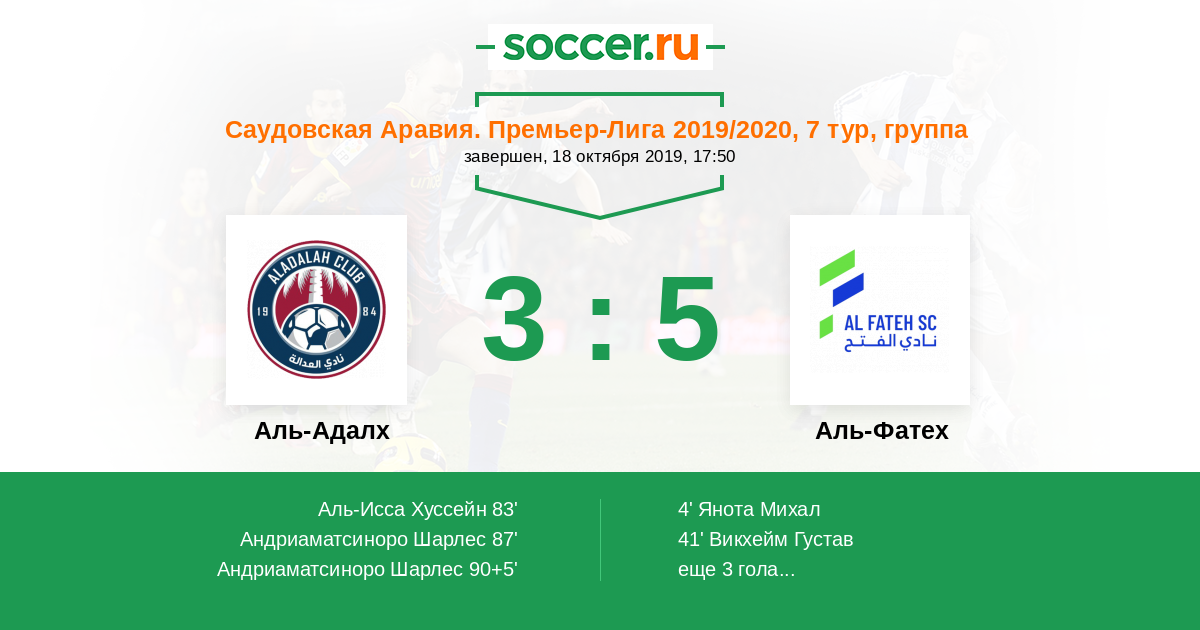 Протокол матча Аль-Адалх против Аль-Фатех