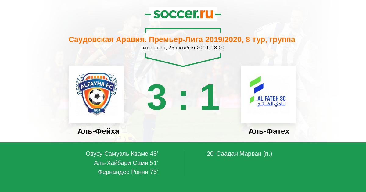 Протокол матча Аль-Фейха против Аль-Фатех