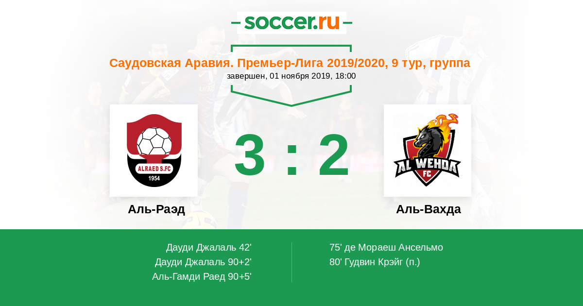 Протокол матча Аль-Раэд против Аль-Вахда