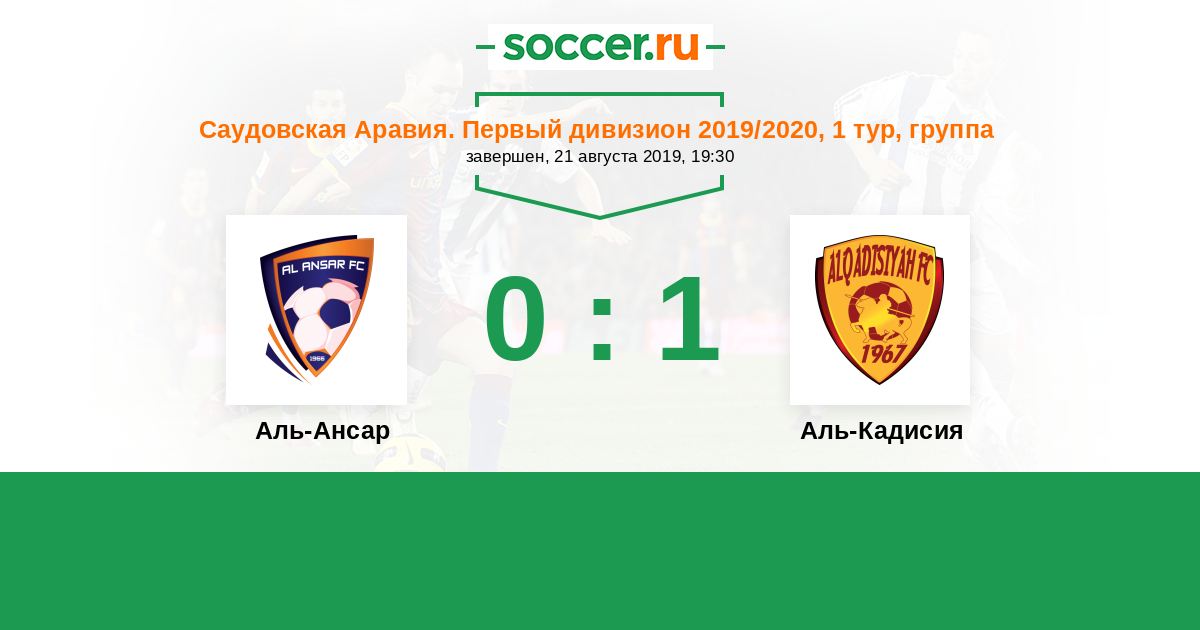 Саудовская Аравия. Первый дивизион 19.03.2009 Аль-Кадисия Логотип футбольный клуб Аль-Кадисия (Эль-Хубар) 1:1 Логотип футбольный клуб Аль-Ансар (Медина) Аль-Ансар