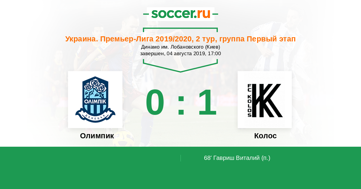 Протокол матча Олимпик против Колос