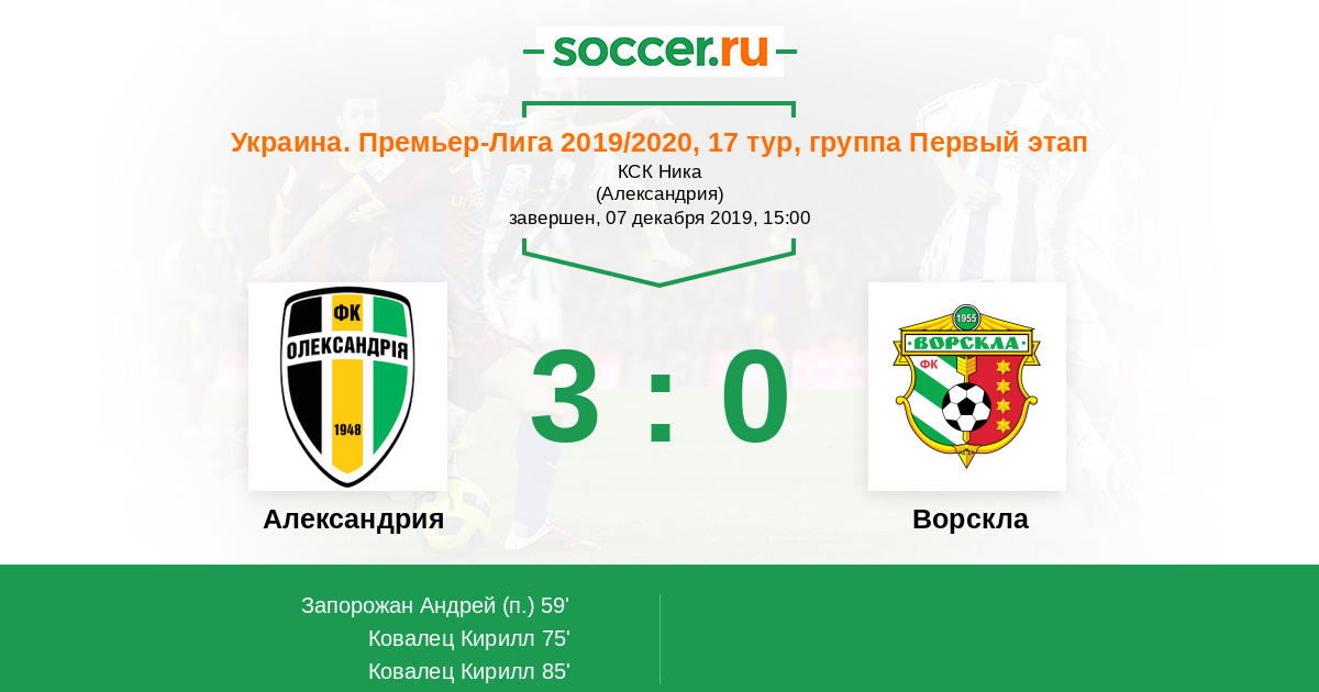 Протокол матча Александрия против Ворскла