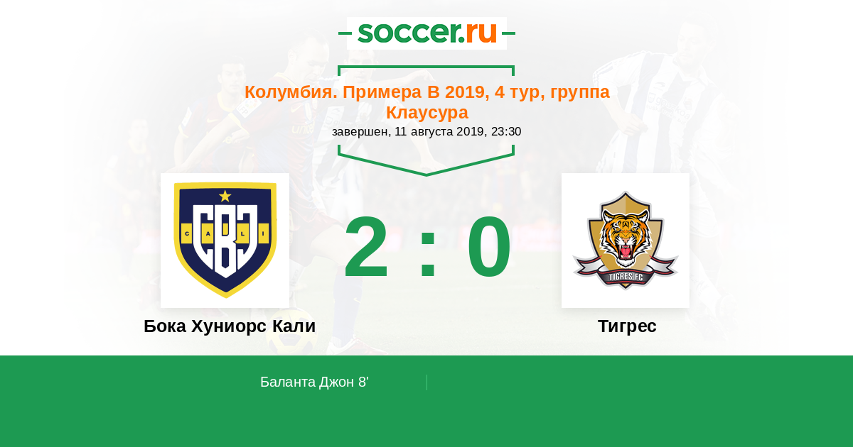 Протокол матча Бока Хуниорс Кали против Тигрес