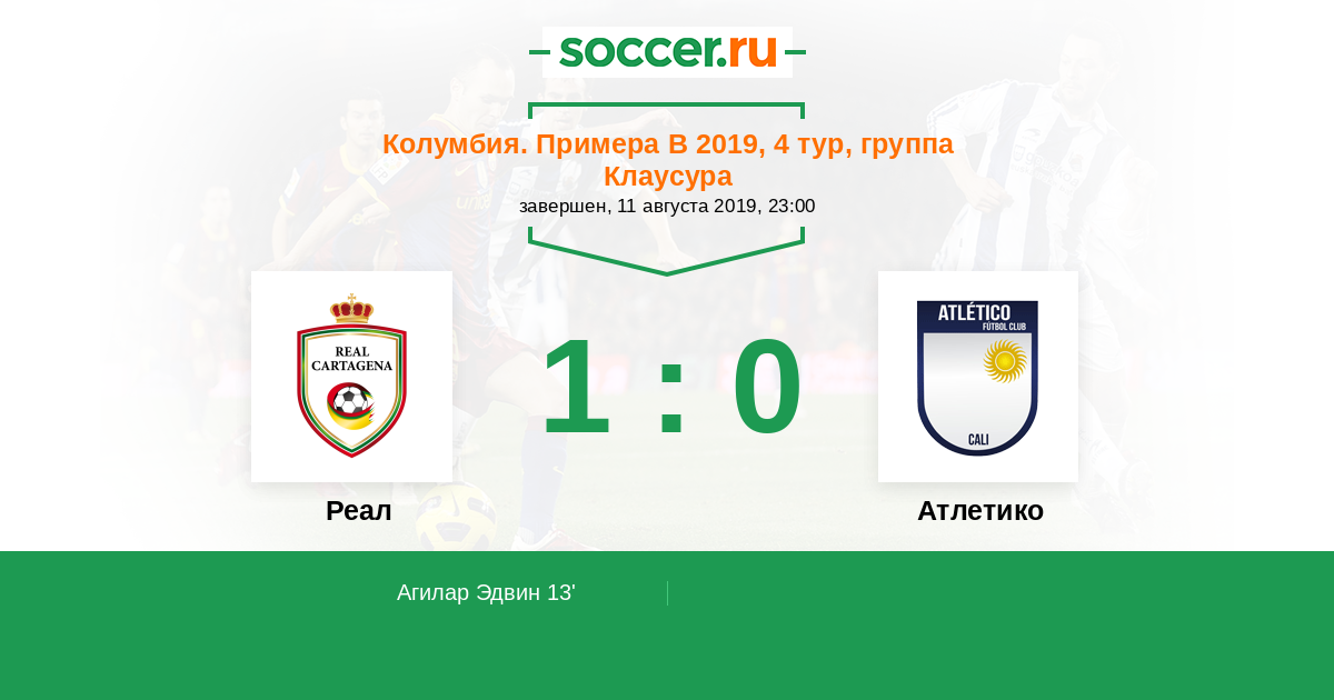 13' (1:0) Агилар Эдвин