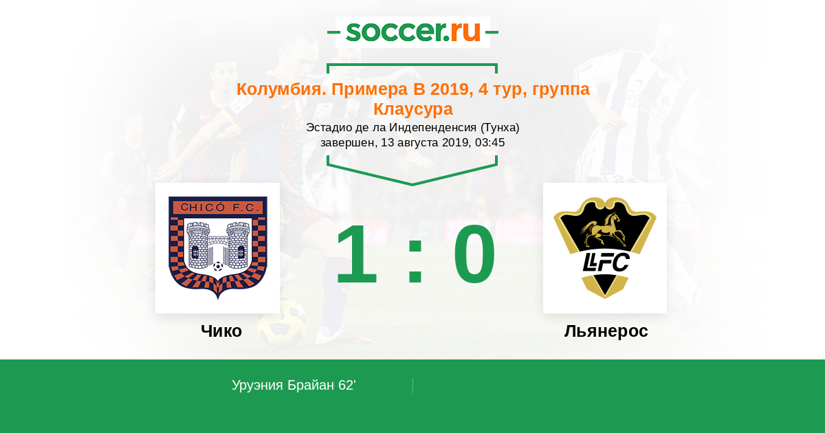Протокол матча Чико против Льянерос