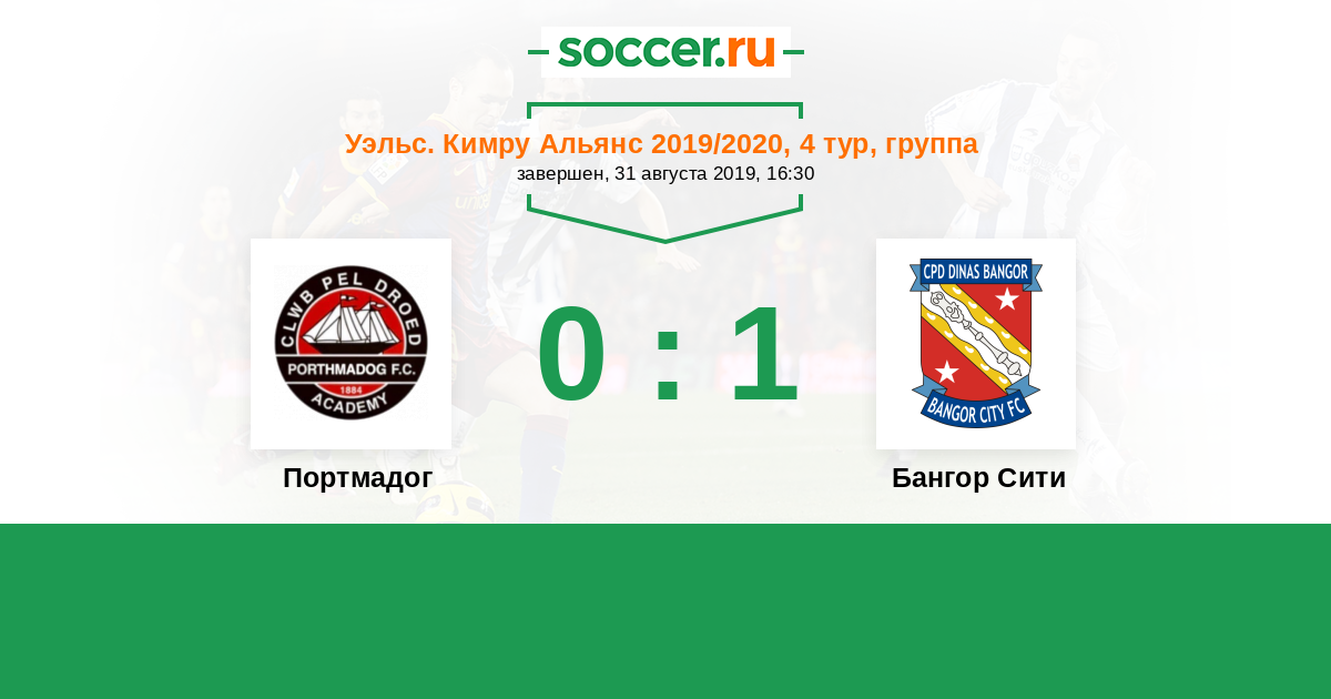Уэльс. Кимру Альянс 21.08.2018 Бангор Сити Логотип футбольный клуб Бангор Сити 1:2 Логотип футбольный клуб Портмадог Портмадог