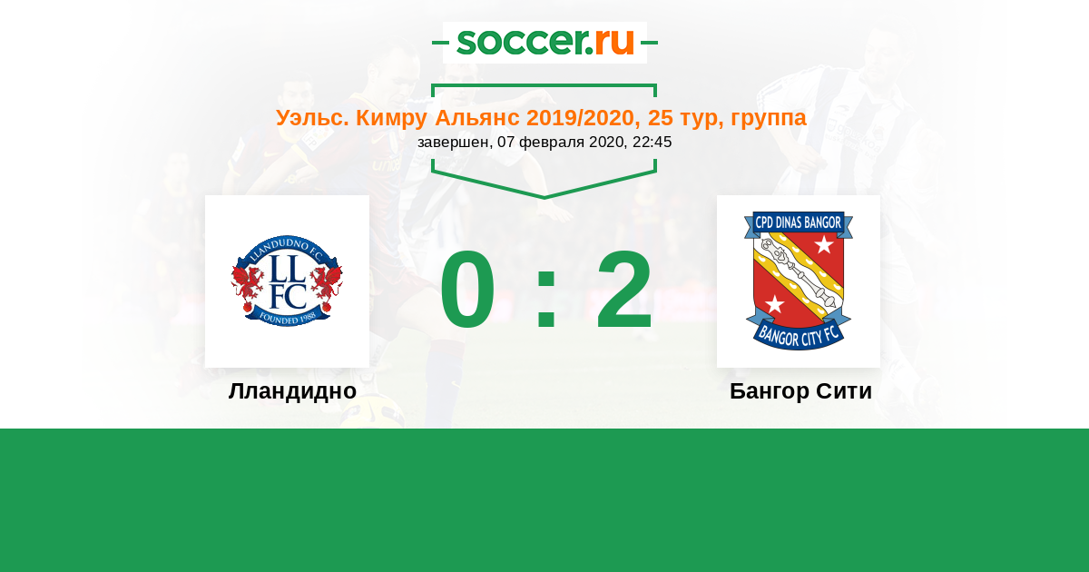 История матча Лландудно против Бангор Сити