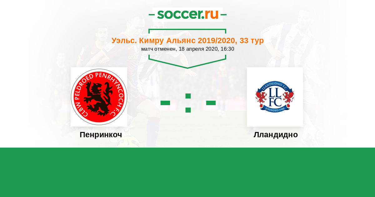 Уэльс. Кимру Альянс 05.04.2014 Пенринкоч Логотип футбольный клуб Пенринкоч 1:2 Логотип футбольный клуб Лландудно Лландудно