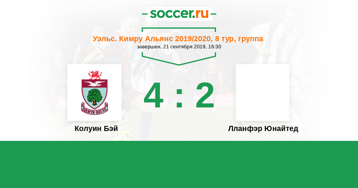 История матча Колуин Бэй против Лланфэр Юнайтед