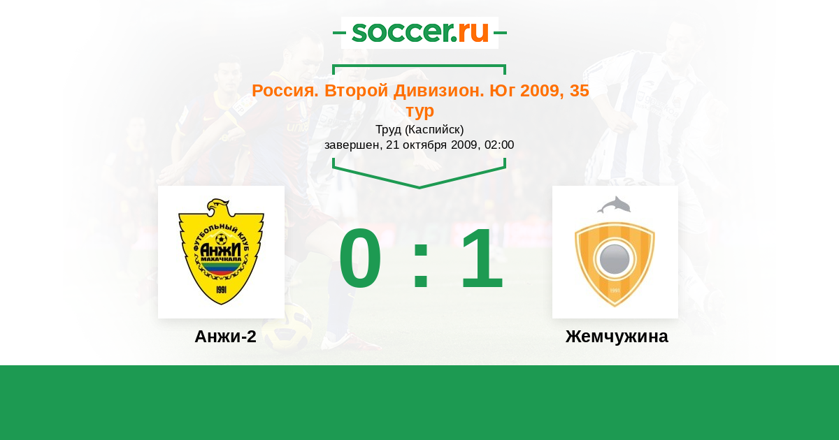 Россия. Вторая лига. Группа 1 05.07.2009 Жемчужина Логотип футбольный клуб Жемчужина (Сочи) 3:1 Логотип футбольный клуб Дагдизель (Махачкала) Дагдизель