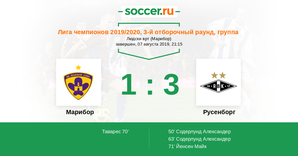 Протокол матча Марибор против Русенборг