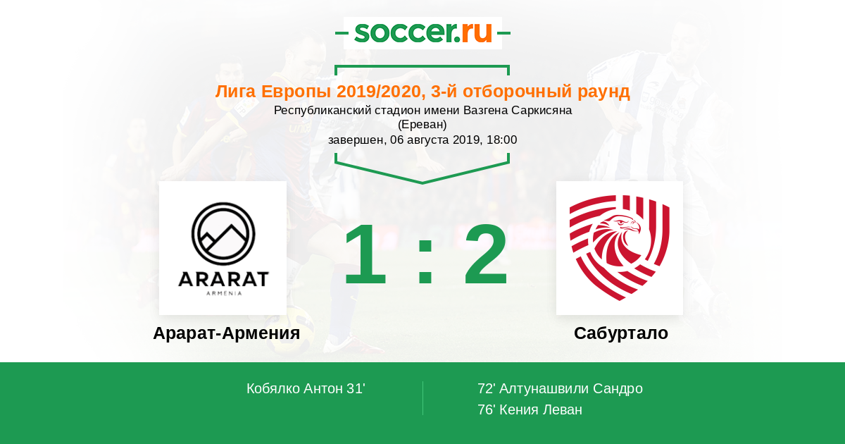 Протокол матча Арарат-Армения против Сабуртало