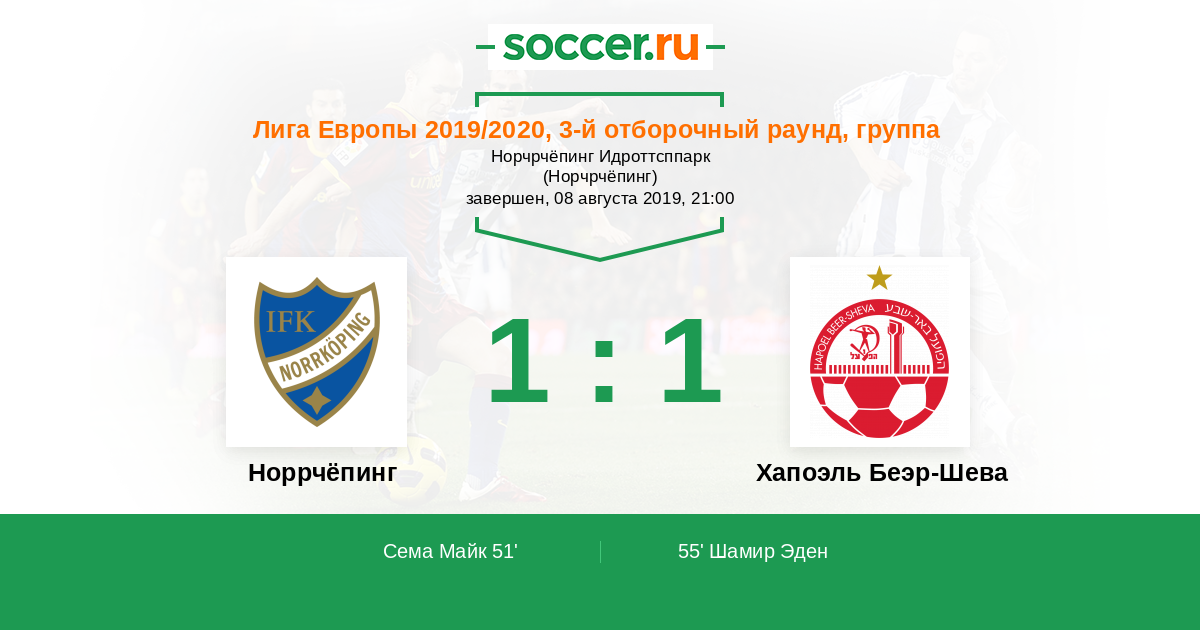 Протокол матча Норрчёпинг против Хапоэль Беэр-Шева