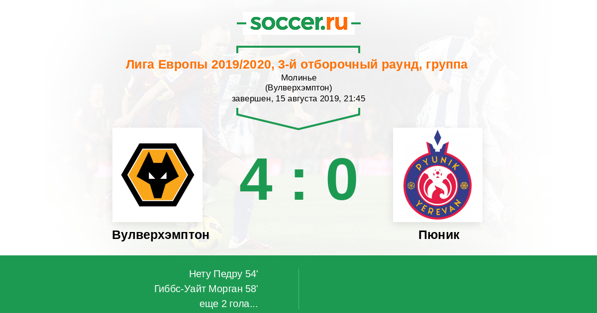 Протокол матча Вулверхэмптон против Пюник