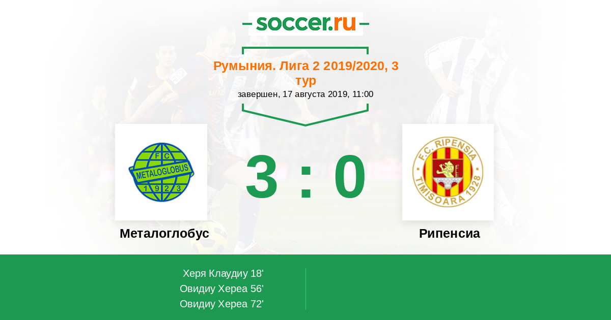 Протокол матча Металоглобус против Рипенсиа