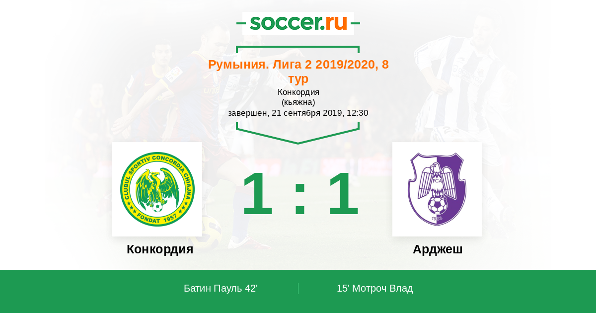 Протокол матча Конкордия против Арджеш