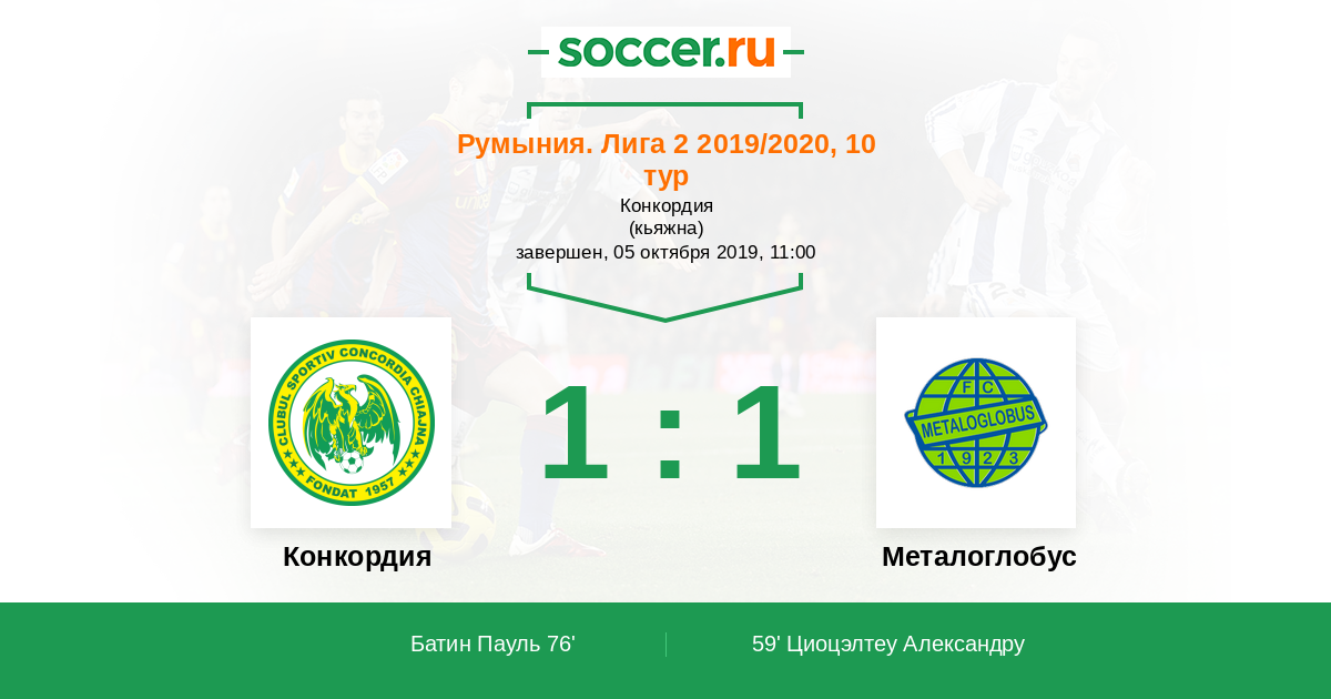 Протокол матча Конкордия против Металоглобус