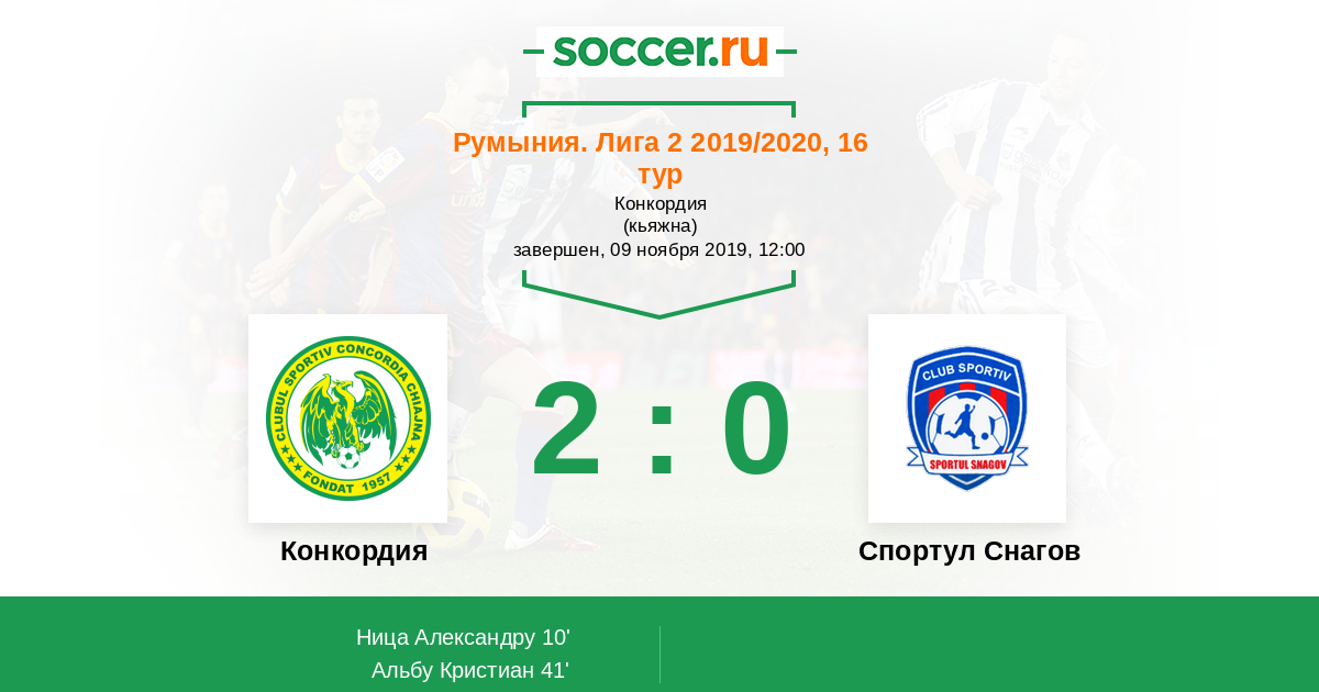 Протокол матча Конкордия против Спортул Снагов