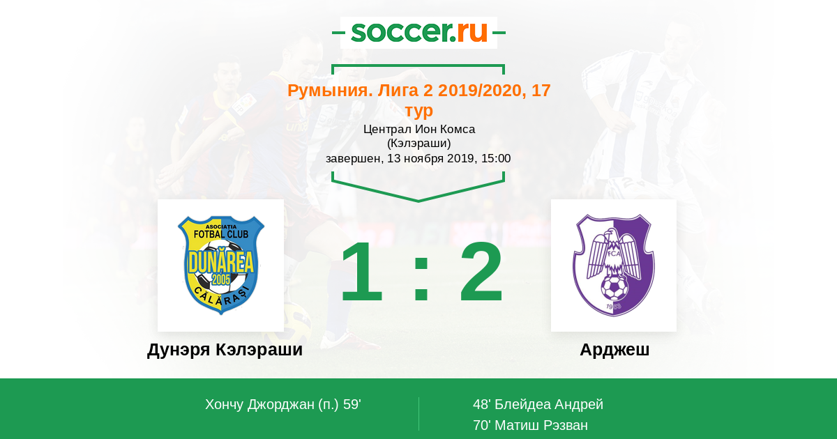 Протокол матча Дунэря Кэлэраши против Арджеш