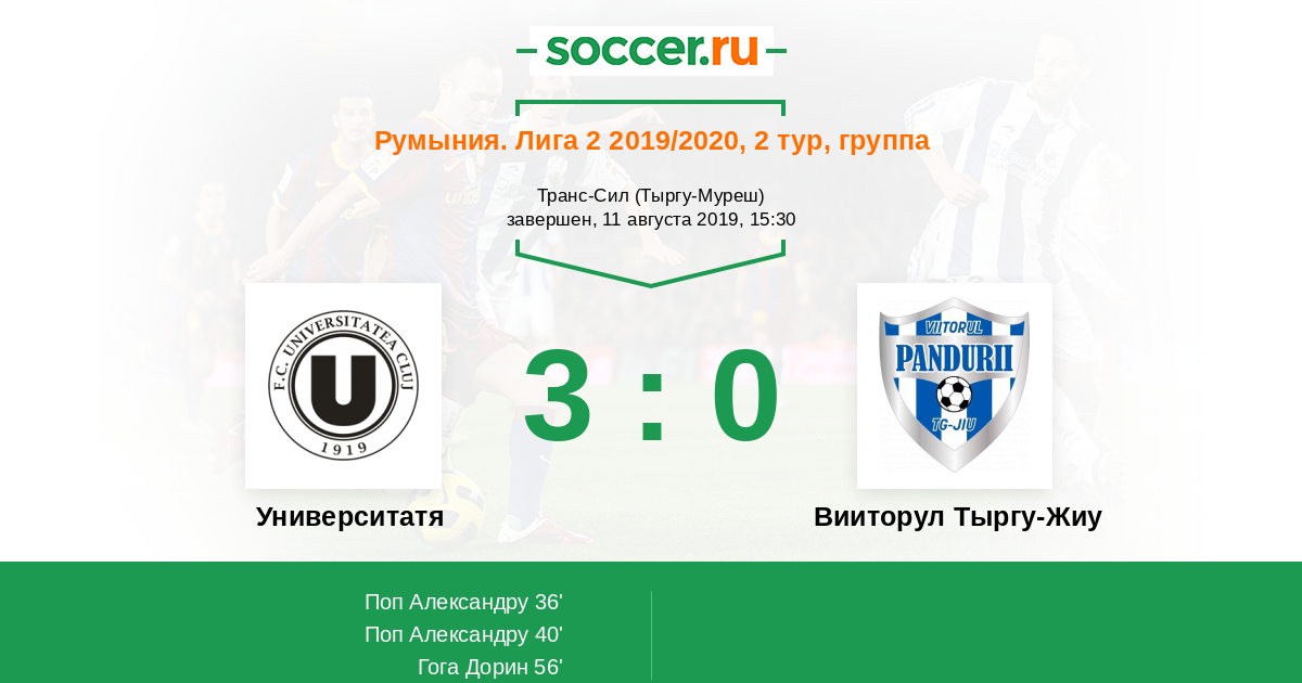 Протокол матча Университатя Клуж против Вииторул Тыргу-Жиу
