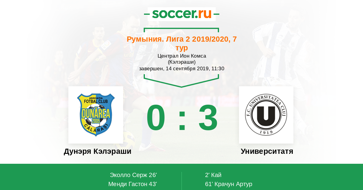 Протокол матча Дунэря Кэлэраши против Университатя Клуж