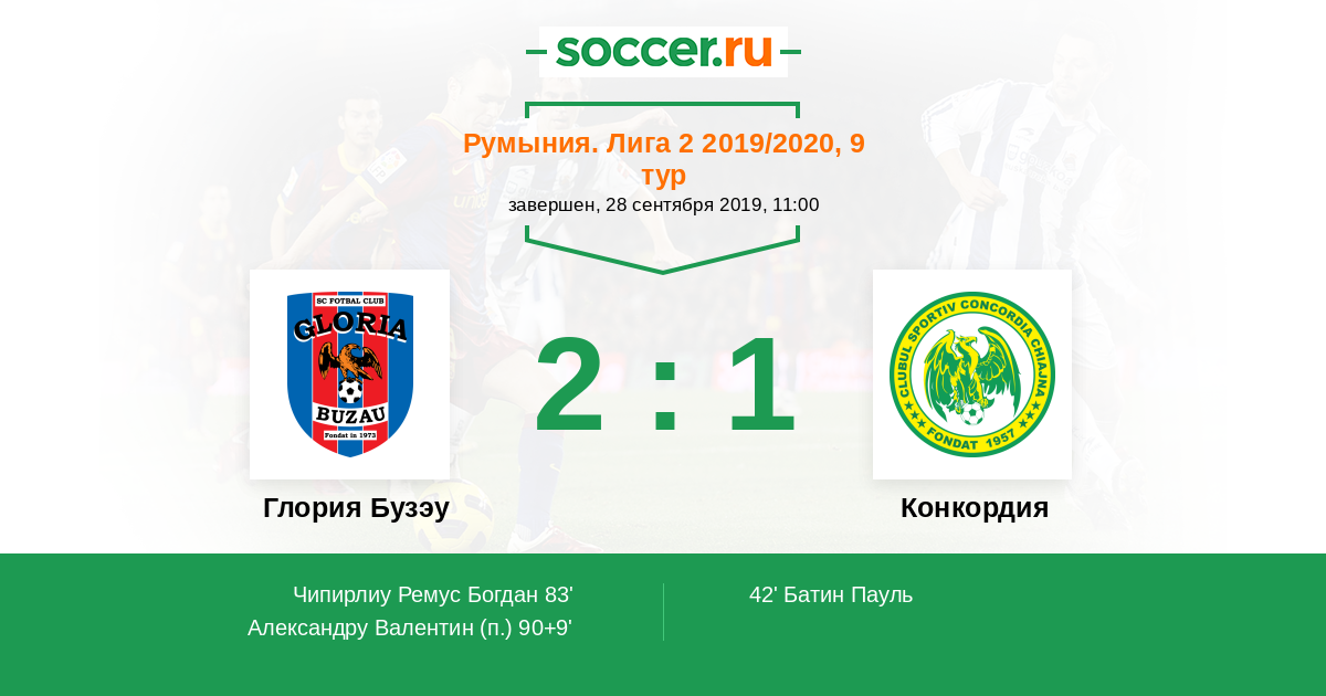 Протокол матча Глория Бузау против Конкордия