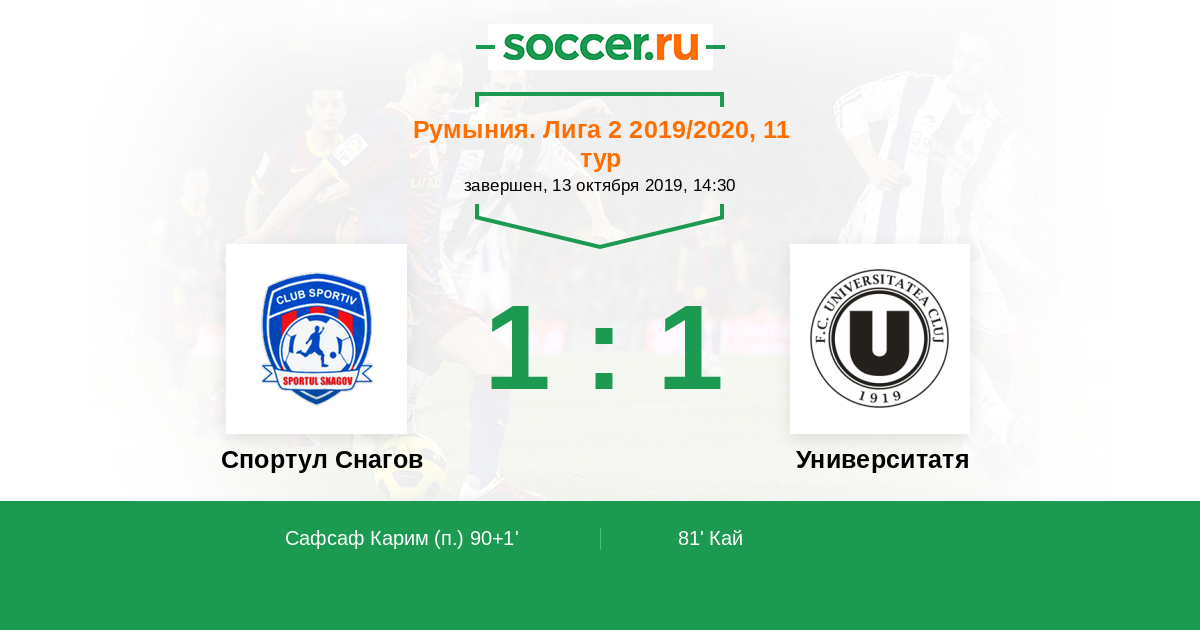 Протокол матча Спортул Снагов против Университатя Клуж