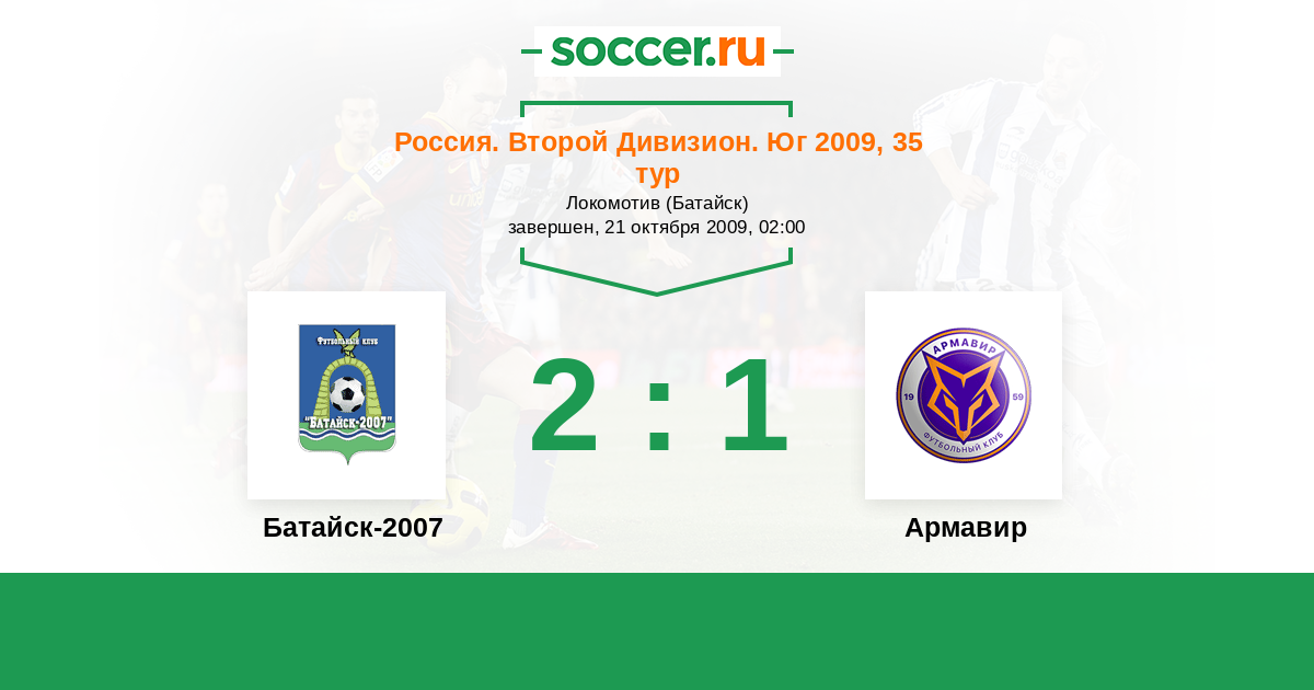 Россия. Вторая лига. Группа 1 05.07.2009 Торпедо Армавир Логотип футбольный клуб Торпедо Армавир 2:1 Логотип футбольный клуб Батайск-2007 Батайск-2007