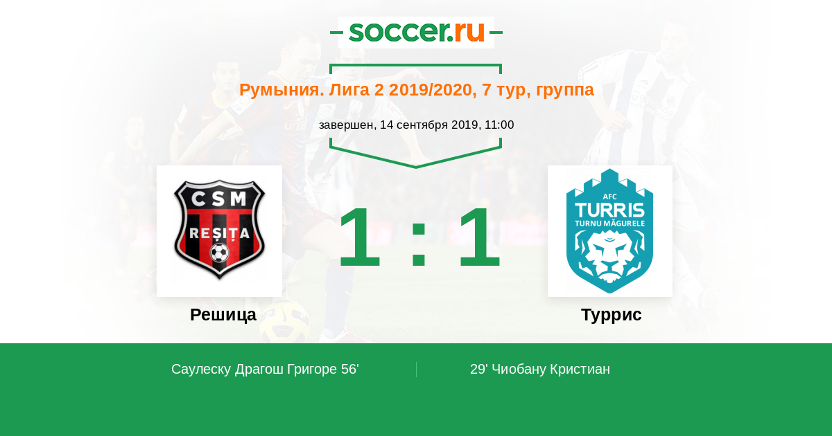 Протокол матча Решица против Туррис